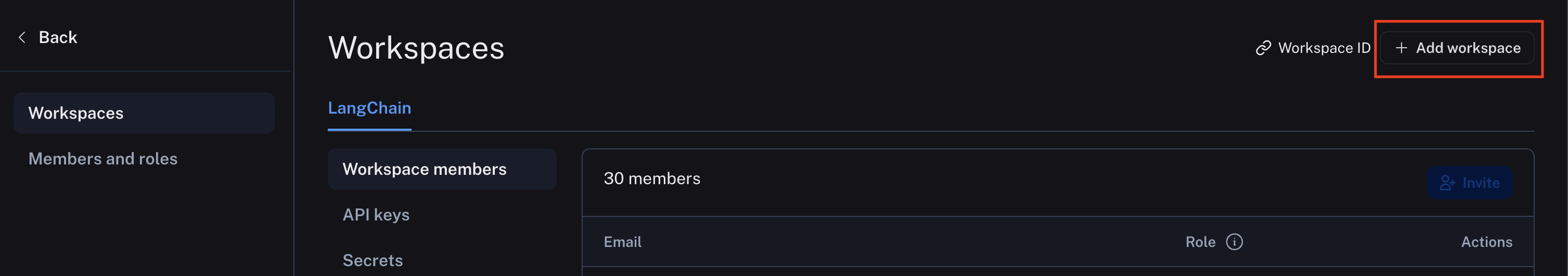 • Set up a workspace: Set up and configure workspaces to organize your LangSmith resources, manage workspace members, and configure settings for team collaboration.